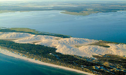 - Wydma Łącka – spektakularna, ponad 40-metrowa góra piasku przypominająca pustynię.